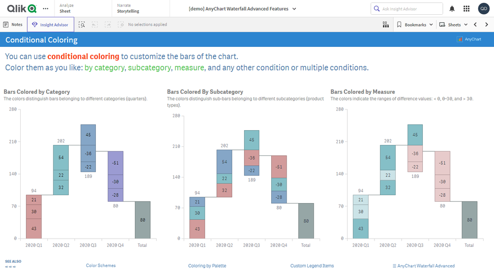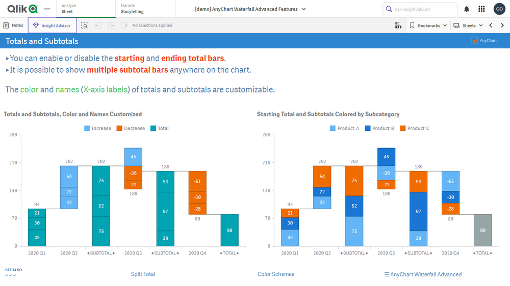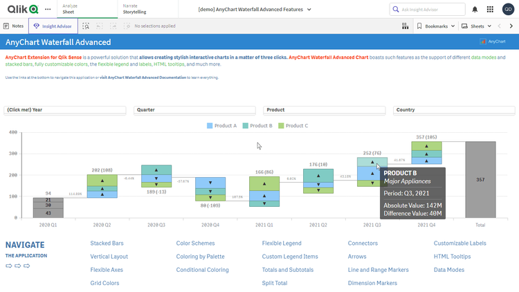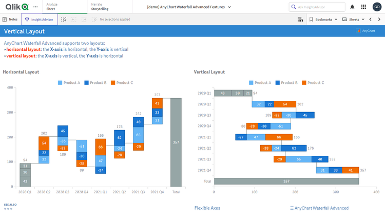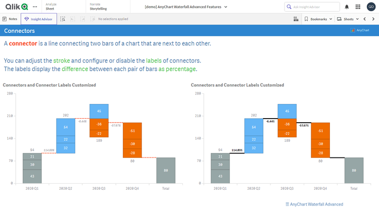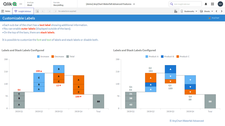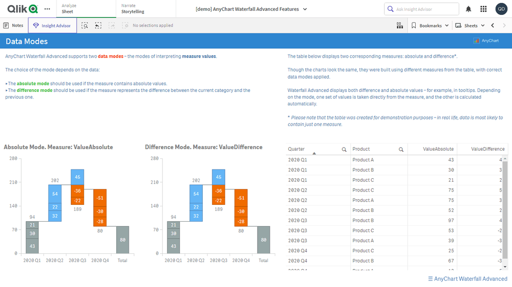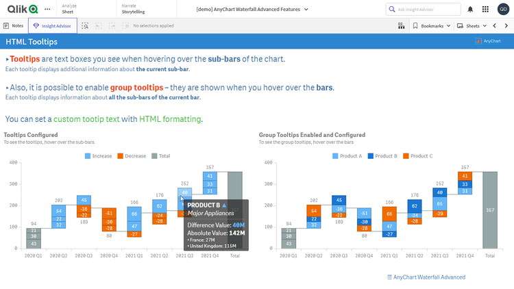 This application features a Advanced Waterfall Chart built with the AnyChart extension for Qlik Sense. The dataset is fictional.