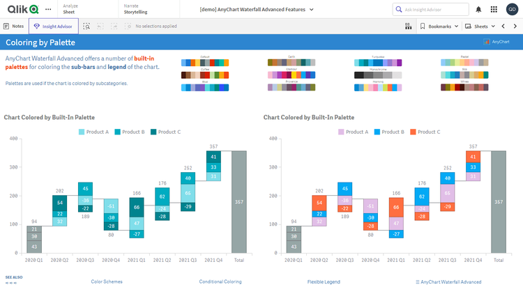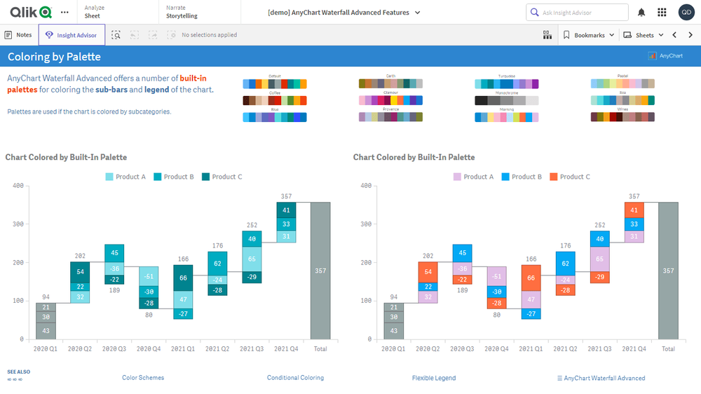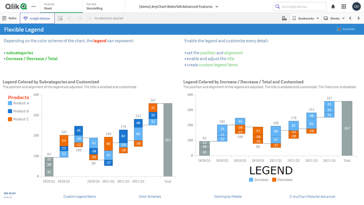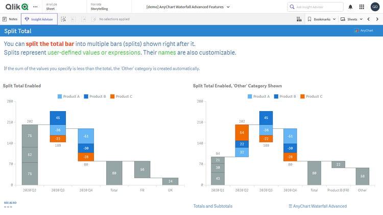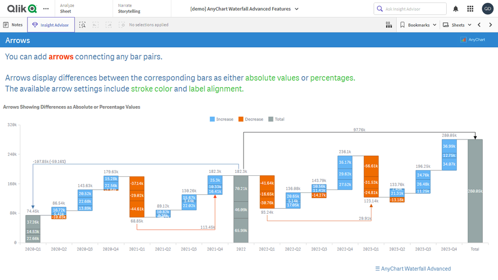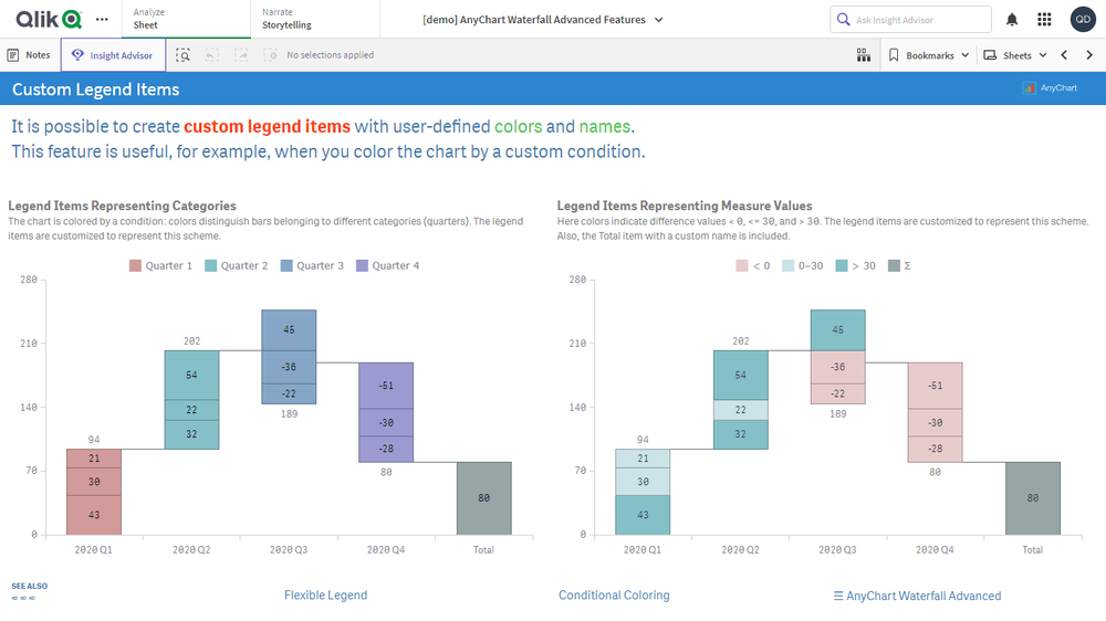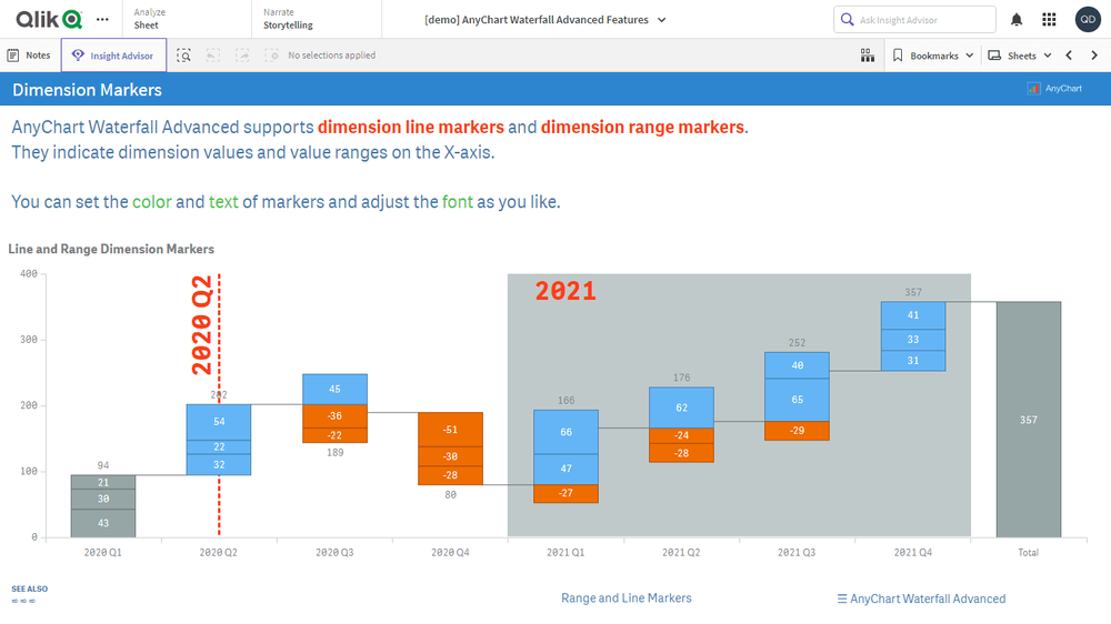 This application features a Advanced Waterfall Chart built with the AnyChart extension for Qlik Sense. The dataset is fictional.
