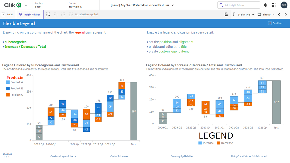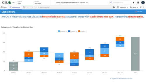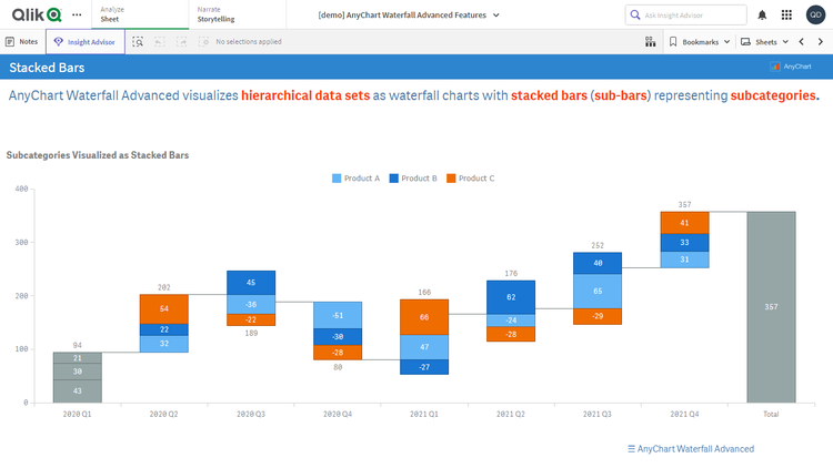 Discover the Stacked Waterfall Chart in Qlik! Explore all major features of the Advanced Waterfall Chart Extension for Qlik Sense in this Qlik demo app.Stacked Waterfall Chart Features