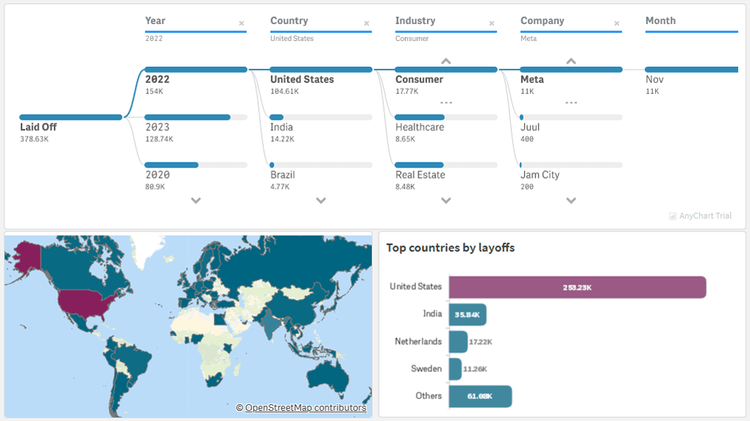 2023 年にデータ分析とビジュアライゼーション分野で最高評価を受けた AnyChart は、革新的な Qlik Sense 拡張機能の数々を提供しています。主要な拡張機能をクイックデモでご紹介し、Qlik でのビジュアルアナリティクスを次のレベルへ引き上げる方法をご覧ください。分解ツリー、ガントチャート、コンボチャート、サーキュラーゲージ、ブルズアイチャート、サンバーストチャート、タイムラインチャート、ウォーターフォール & アドバンストウォーターフォールチャートを体験できます。